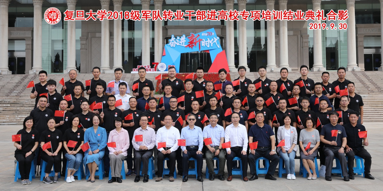 结业典礼适逢全国上下举行以“壮丽七十年,奋斗新时代”为主题的国庆七十周年庆典前日,热烈的国庆气氛,为结业典礼平添更加浓烈的喜庆,为军转学员结业留下难忘的复旦记忆。