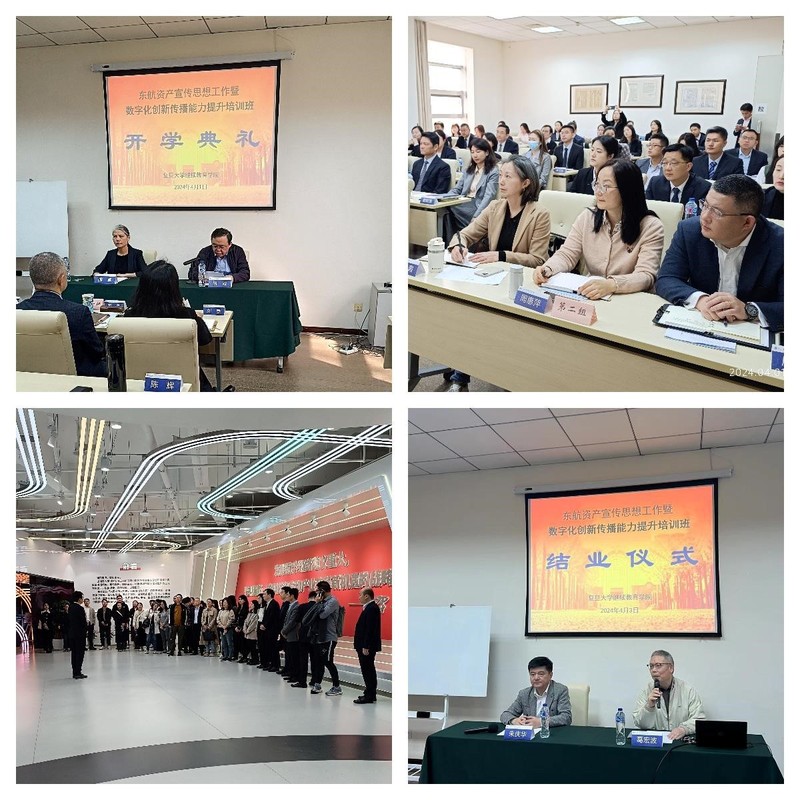 在短暂的 3 天培训课程中,学院与东航资产充分沟通,针对培训学员的组成,邀请了黄芝晓、赵渭荣、刘钢、赵民、谢海光等专家学者就媒体数字化转型、意识形态工作开展、舆情处置、新闻写作等内容为学员授课。针对超过 2/3 学员均为 90 后学员的年龄比例,授课教师还特别准备了青年人感兴趣的话题、案例与语言表述方式,使课堂生动而风趣,师生互动活跃。