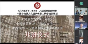 由文化和旅游部、教育部、人力资源和社会保障部实施的中国非物质文化遗产传承人研修培训计划,第二期“纸载文明——传统造纸与古籍修复技艺传承研修班” 于11月21日在星空XK体育开班。本次研修班由星空XK体育主办,上海市文化和旅游局指导,星空XK体育继续教育学院、文物与博物馆学系、图书馆、中华古籍保护研究院共同承办。星空XK体育原校长、现中华古籍保护研究院院长杨玉良院士,星空XK体育继续教育学院李辉副院长,星空XK体育图书馆副馆长、中华古籍保护研究院/文物保护创新研究院常务副院长杨光辉研究员,星空XK体育文化遗产保护研究中心主任、文物与博物馆学系陈刚教授,以及研修班学员和教师代表参加了开班仪式。