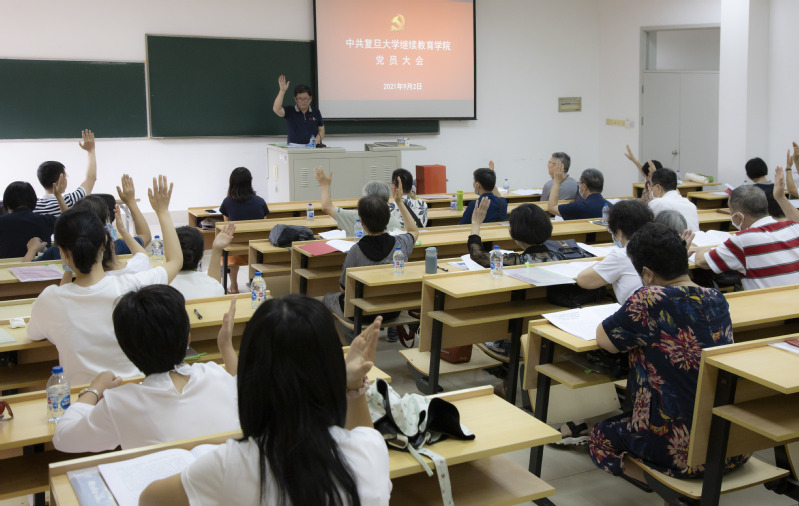 9月2日,中共星空XK体育继续教育学院党员大会在四平路院区2103教室召开。学院全体教职工党员、退休党员参加会议,院长宓詠、副院长葛宏波、非学历教育部周珽等同志受邀列席。会议由副院长应建雄主持。