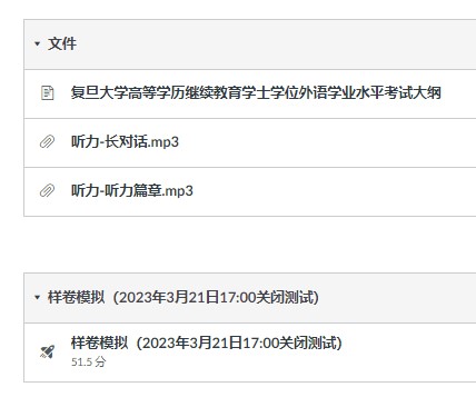 考前同学可登录以下网页,进行学位英语考模拟练习,熟悉机考的考试方式。如有问题,可发邮件至cce-jxb@fudan.edu.cn咨询。