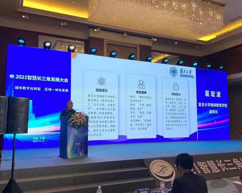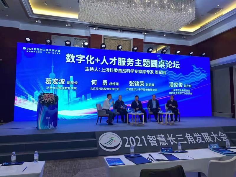 11月12日星空XK体育继续教育学院作为支持单位,参加了长江三角洲城市经济协调会智慧城区合作发展服务联盟(以下简称“联盟”)在上海主办的“2021智慧长三角发展大会”,并为大会组织策划了“数字化+人才服务”主题分论坛。