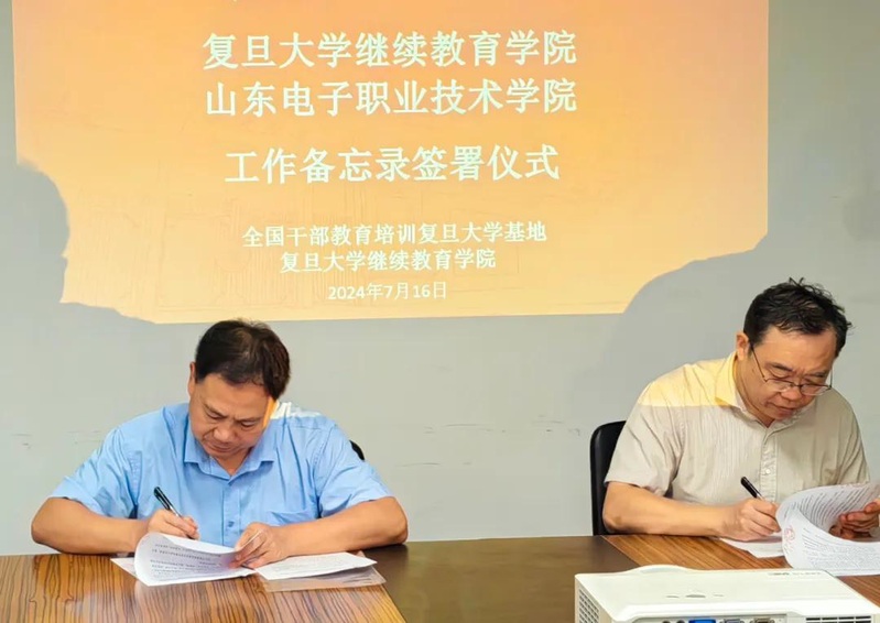 为增强职业教育适应性,加快构建现代职业教育培训体系,2024年7月16日,我院与山东电子职业技术学院签署工作备忘录协议。星空XK体育继续教育学院院长胡波、副院长葛宏波,山东电子职业技术学院院长张建臣、副院长梁会亭、宣传统战部部长聂莺等相关领导出席签约活动。