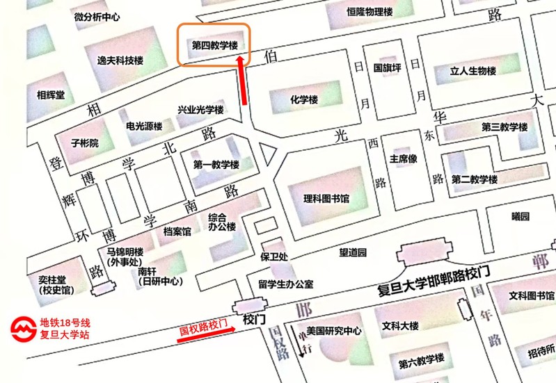 1、第四教学楼在星空XK体育邯郸校区内,距离国权路校门和邯郸路校门较近。校内不能停车,请采用公共交通出行,国权路校门靠近地铁18号线星空XK体育站。