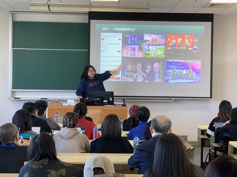 “AI前沿应用”课程讲师赵卫东教授,以浅入深,以AIGC在办公应用上的初级使用入手,教会大家如何在职场提升工作效率,将自己从传统单一的工作模式中解放出来;“AI实操课程”讲师李奕辰,作为AI春晚发起人,分享如今最先进的AI视频生成工具,并结合巧妙构思,所创作的作品屡屡获奖的经验心得;“AI社交媒体运营与推广”讲师唐木,结合AIGC技术与自媒体运营,为大家剖析了小红书、抖音等自媒体的运营逻辑,讲授训练AI的方法和公式,更精准地用AI输出个人IP或品牌的打造。